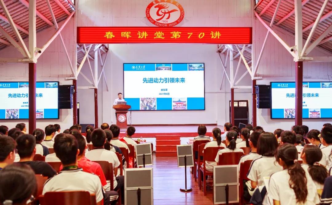 为进一步深化与浙江省重点中学的交流合作,6月24日,中国工程院院士、天津大学校长金东寒应邀率队赴浙江省绍兴市第一中学、春晖中学进行招生宣传并举办科普报告会。加拿大工程院院士、天津大学新工科教育中心主任顾佩华,绍兴市教育局,天津大学党办校办、教务处、机械学院、精仪学院等部门单位负责同志陪同参加。