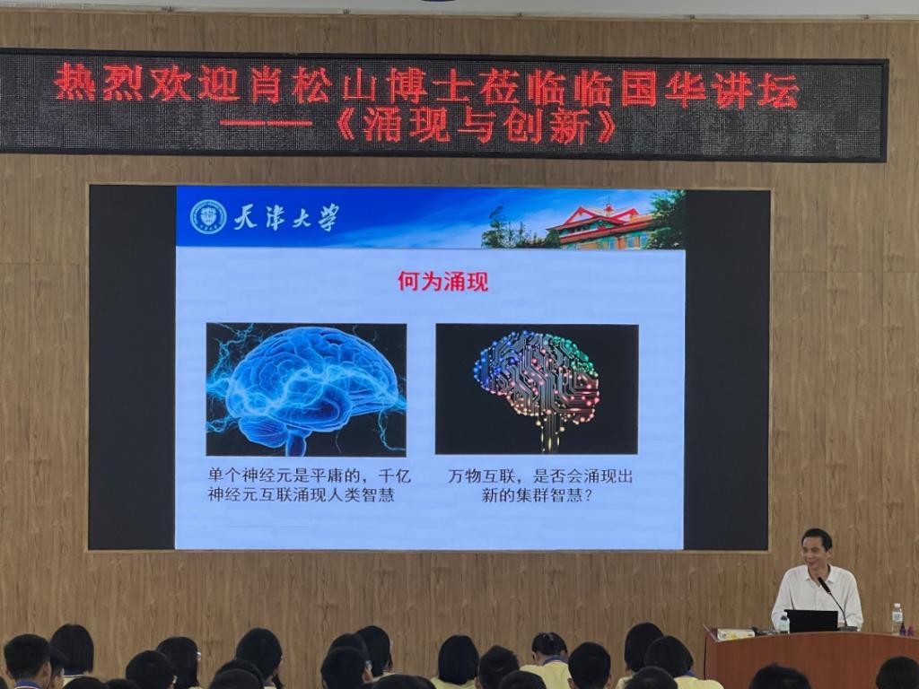 肖松山为同学们带来题为《涌现与创新》的科普报告。他以全新的创新理念——涌现为切入点,通过颠覆式的思维方式与令人深思的案例,与在座师生共同探讨了“什么是涌现”“如何产生涌现效应”以及“如何创造涌现价值”三个问题。他强调,涌现是复杂系统最有魅力最有吸引力的属性。我们既要重视从0到1,也要研究如何实现1+1大于2、1+1+1如何大于甚至远大于3,即实现涌现效应,创造涌现价值。肖松山还将天津大学近几年在教学、科研、人才等方面取得的突出成果“巧妙”嵌入到报告当中,并鼓励考生瞄准时代与未来,树立“天大”的志向,为国家建设贡献自己的“天大”力量。李磊介绍了天津大学的办学历史、学科专业优势、人才培养特色、多彩校园生活等情况。