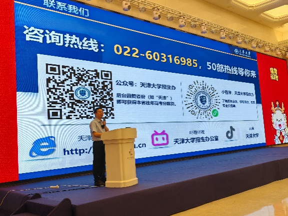王天友为安徽考生与家长带来“愿与你相遇北洋”主题宣传,从天津大学的悠久历史、发展理念、专业优势、学科特点等多方面全面系统地介绍了学校的基本情况,他表示“天津大学是一所低调而又有内涵的大学,考生们如果想选择一所好大学,又同时选择一个好的专业,那么天津大学就是各位考生和家长的不二选择。”
