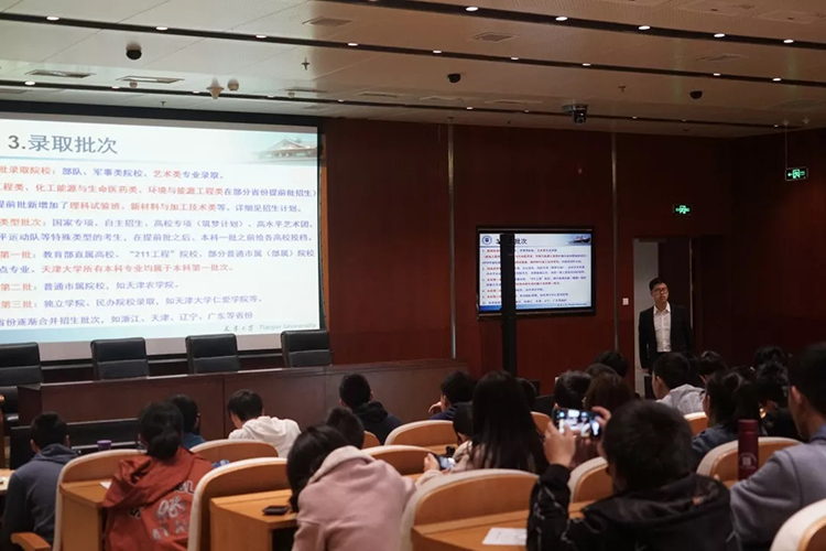 张老师首先介绍了志愿填报的相关基础知识和天津大学的招生政策,随后,张老师重点讲述了天津大学招生办、天津大学招生宣传协会的工作策略和在招生宣传工作中需要注意的问题。