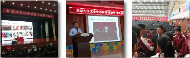 3月28日,杜希文教授来到山西省阳泉一中,为那里的高一高二学生带来了题为“科学世界里的田园生活”的报告。长久以来,人们认为科研是冷冰冰的,缺少人文情怀。但是,在杜教授眼中,科学研究是真善美的田园生活。他结合自己的专业,阐述了唯美的材料科学,随后又讲解了天大的材料研究,并就新能源材料的进展进行了介绍。台下的学生全神贯注地听讲,纷纷表示收获颇丰。