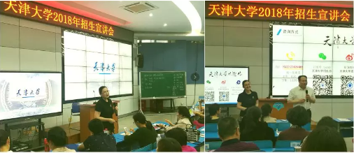 为进一步落实天津大学本科招生宣传双“800”计划,加强学校与四川省重点中学之间的联系,扩大学校的影响力,4月23日至25日,天津大学四川招生宣传组组长傅利平教授、自动化学院齐俊桐教授、何晋伟教授、四川招生组刘伟老师先后走进成都石室中学文庙校区、石室中学北湖校区、树德中学宁夏街校区、树德中学光华校区、成都七中林荫校区开展了4场科普讲座和5场招生宣传会。