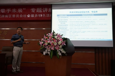 5月22日,天津大学招生办应民进津南区委员会、民进天大委员会的邀请,赴津南区咸水沽二中进行招生宣讲。