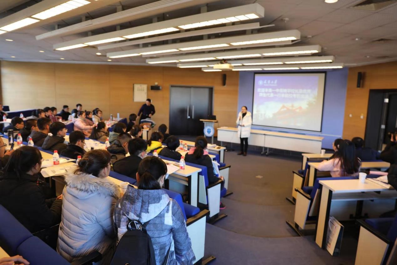 史慧向来访师生介绍了两个小故事:在热门综艺节目《奔跑吧兄弟》赴我校北洋园校区录制节目期间,录制现场旁边的公共教学楼内同学们专注自习的场景与大量粉丝涌入校内形成鲜明对比;智能与计算学部纪念改革开放四十周年举办定向越野活动,同学们将所学专业知识与活动有机结合编写程序,让活动别有一番趣味。她以这两个故事为例向来访师生,既向来访师生展现了我校学风之浓厚,又展现了同学们天津大学学生“寓学于乐”的能力。最后,她结合多年来辅导学生填报高考志愿的经验向大家分享了“如何选学校、选专业”,同时她也强调,选择专业一定要结合个人兴趣。