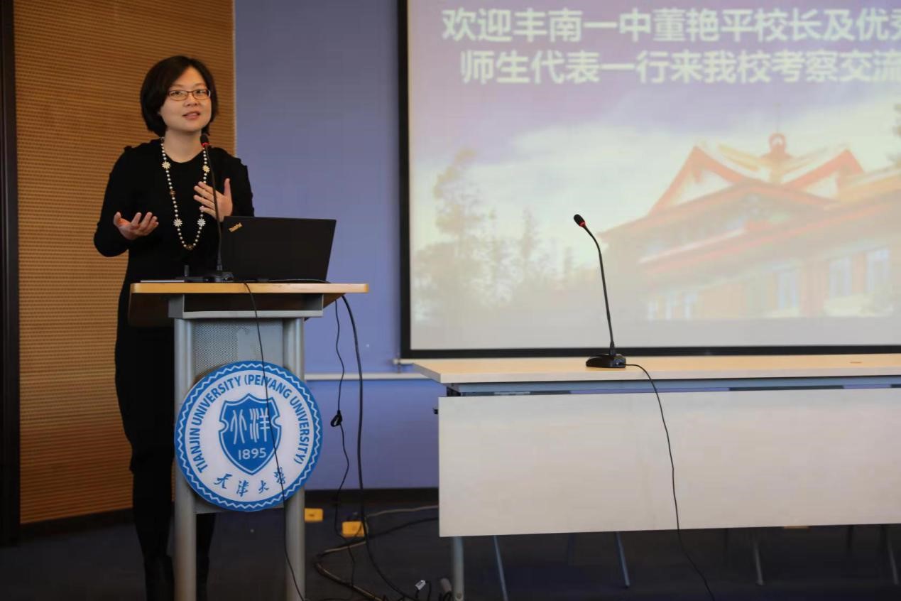 夏淑倩代表学校对董艳平副校长一行的到来表示欢迎。她指出,丰南一中“严、勤、实、活”的校训与天津大学“实事求是”的校训有很多相通之处,丰南一中近年来为天大输送了很多优秀学子,学生们在天津大学也会得到最好的培养。她表示,化工学院非常重视本科人才培养,并向来访师生介绍了化工学院完善的人才培养体系、雄厚的师资力量和学科实力、一流的国际认证成果。最后,夏淑倩院长她指出,大学教育与中学教育相辅相成,也欢迎董校长及各位老师对我校的人才培养政策提出宝贵的建议和意见,共同培养创新人才,为人才培养做出“天大”的贡献。