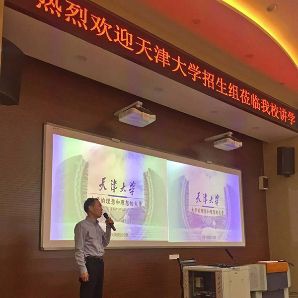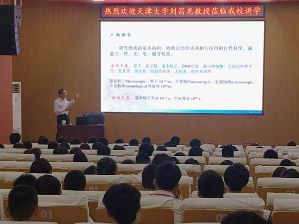 5月6日晚,招生组一行又走进南昌市外国语学校。刘昌龙教授为学生做题为《改变世界的物理学》的科普报告。随后李春梅老师从发展历史、办学特色、科学研究、人才培养等方面,对天津大学进行了详细的介绍。让学生从雄厚的办学实力、一流的校园环境、深厚的文化底蕴、丰富的校园生活全方位地建立了对天津大学的向往。