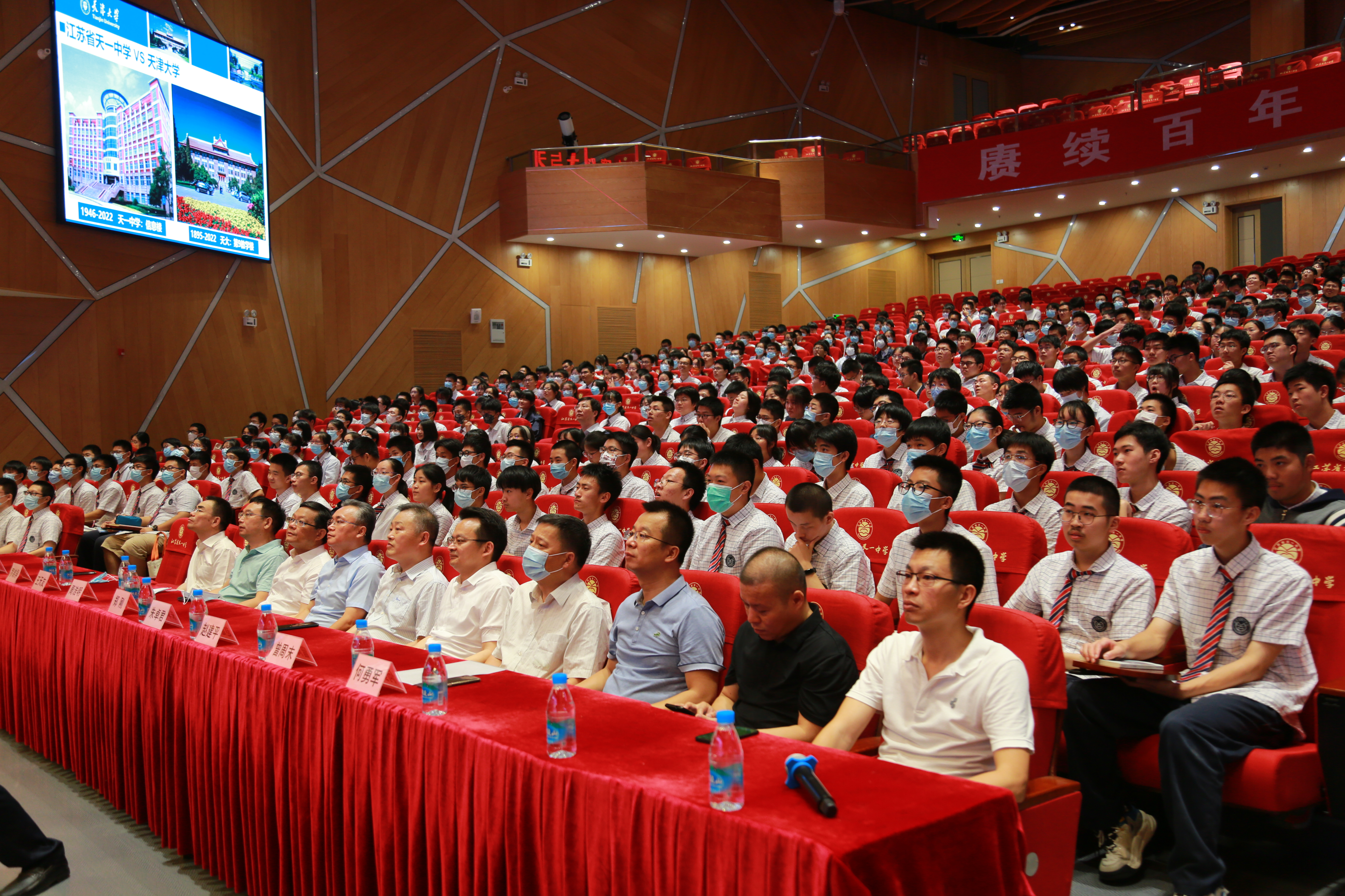 为进一步深化与江苏省重点中学的交流合作,6月25日,中国工程院院士、天津大学校长金东寒应邀率队赴江苏省天一中学进行招生宣传并举办科普报告会。天津大学党委常委、副校长郑刚,无锡市人民政府办公室二级巡视员周浩明、无锡市科技局局长赵建平陪同参加。江苏省天一中学校长朱卓君热情接待金东寒校长一行。