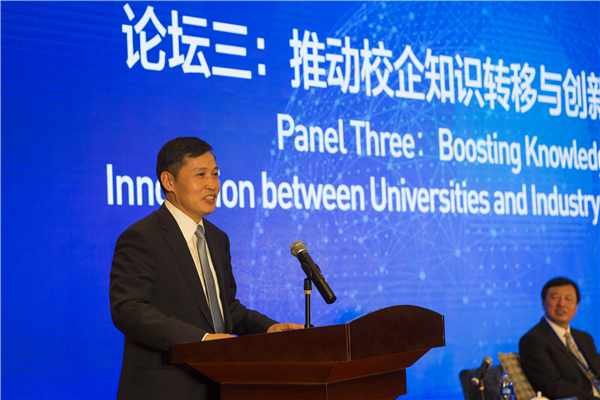 在“推动校企知识转移与创新的新趋势与新策略”议题环节,钟登华介绍了天津大学以“新工科建设”为牵引,在深化产教融合、促进学科交叉融合、加强国际化建设等方面的实践,并分享了天津大学在知识转移、成果转化、异地研究院建设方面的经验。