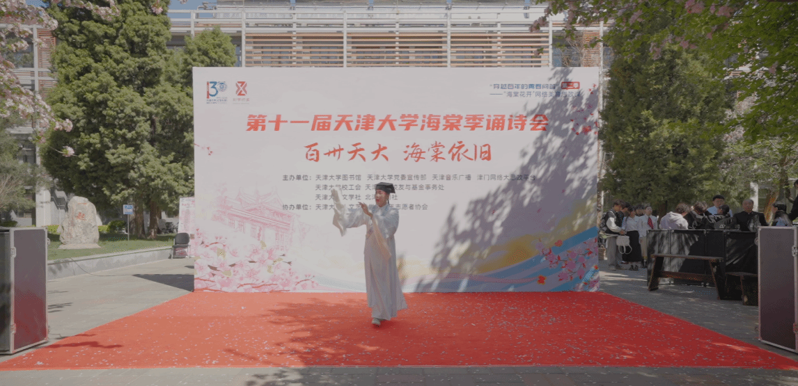 校友情谊在花开时节温暖延续。校友之家推出“海棠市集”和纪念品展销,校友卡小程序“1895天大人”便捷服务获点赞;30余家校友企业联合展览助力就业对接;第十一届海棠季诵诗会则收录36位校友诗作,以文字续写北洋情缘。