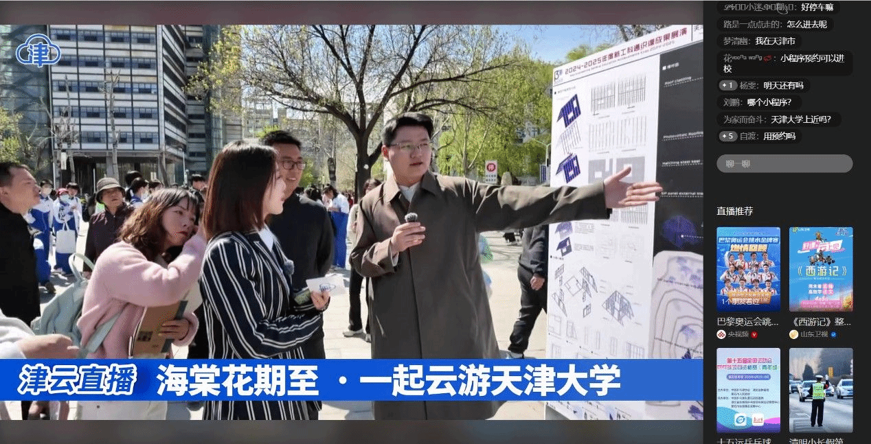 建筑学院院史馆作为“百卅天大情”游览线路的重要一环,以沉浸式布局展现学科发展脉络。常务副院长张昕楠教授通过津云直播带领观众“云游”展馆,建筑学院新工科展位与城市更新科普基地则用模型与互动演绎建筑学的传承与创新。