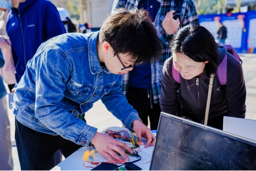 “一度电的绿色革命”智能电网科普活动点亮环保初心。卫津路校区智能电网科普教育基地内,新能源发电互动体验区吸引游客化身“小小电力专家”,太阳能板驱动风扇、水力发电模拟装置直观展现清洁能源转化;智能电网模型与“双碳”知识讲解揭开电力科技奥秘,家庭用电监测技术演示更让参与者惊叹:“一度电也能掀起绿色浪潮!”海棠花香与科技探索交融,助力低碳理念深入人心。