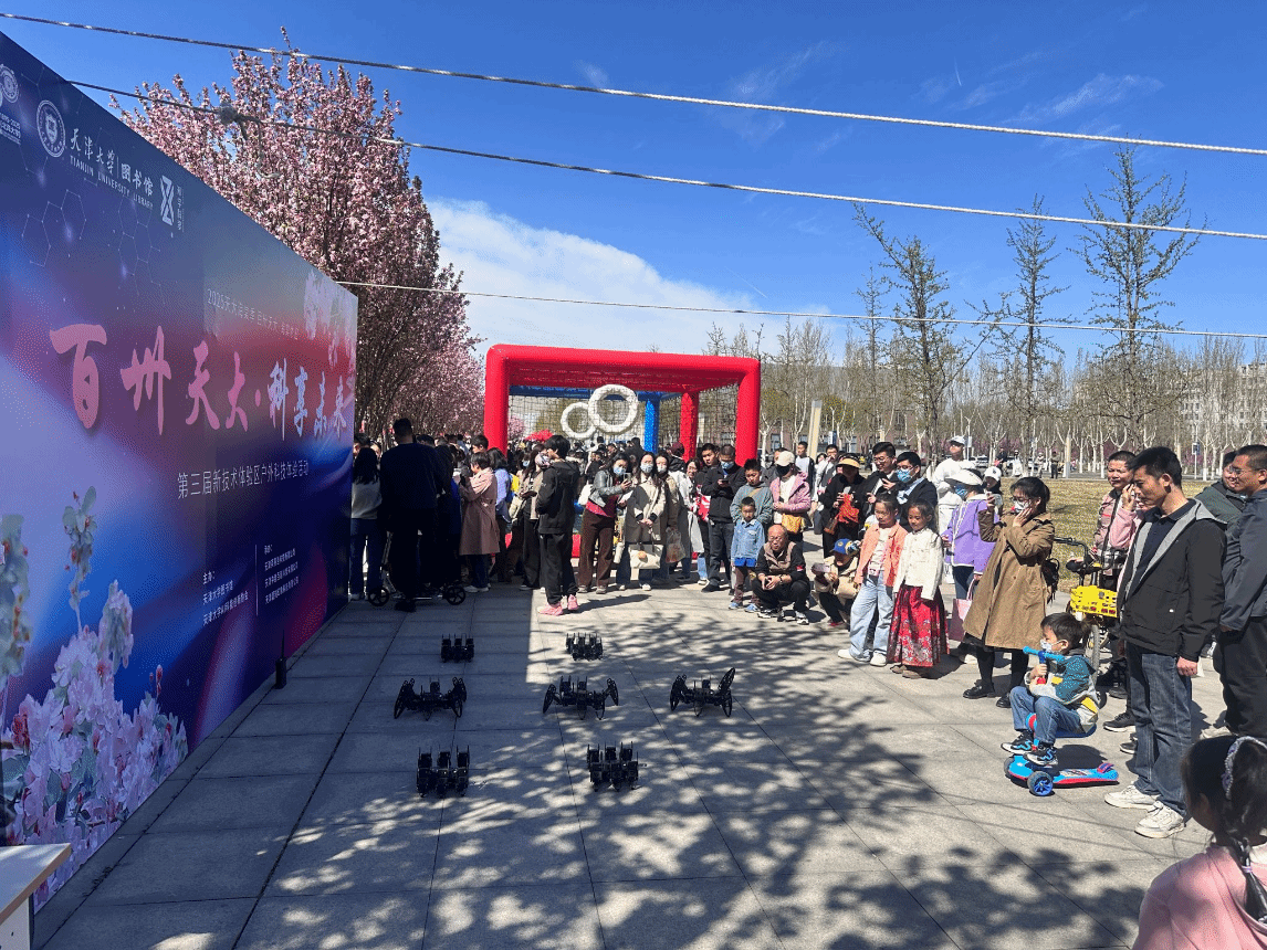 科技与人文的融合成为本届海棠季亮点。北洋园校区图书馆外侧,“百卅天大·科享未来”户外科技体验区人气火爆,机器人编队表演精准炫酷,无人机足球比拼激烈酣畅,AI数字人以拟人化交互惊艳全场。