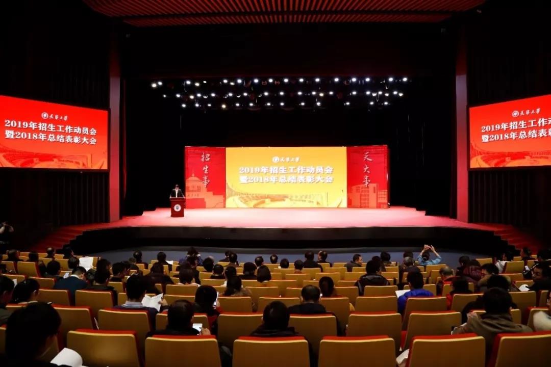 1月25日,天津大学2019年招生工作动员会暨2018年总结表彰大会在求实会堂举行。