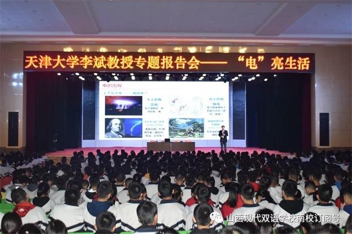 10月15日下午,“让名校教授走进双语大讲堂”,山西现代双语学校高中邀请天津大学招办主任李斌教授来校为我校高中学生做“电亮生活”专题讲座。